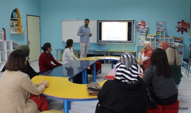 Karaman İl Millî Eğitim Müdürlüğü koordinesinde Karaman Rehberlik ve Araştırma Merkezi tarafından yürütülen aile okulu eğitimlerine katılan velilere yönelik eğitici, geliştirici ve rehberlik edici etkinlikler ve seminerler veriliyor.