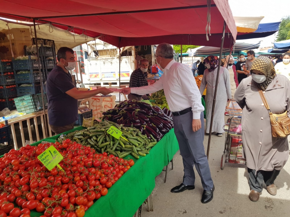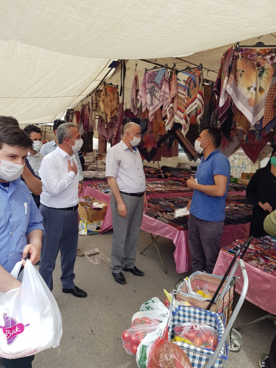 Salgınla mücadelede en önemli hususun izolasyon ve sosyal mesafe olduğunu belirterek, kurallara uyduğumuz takdirde virüsün etkisini azaltacağız ve bu işi birlikte başaracağız. Pazar esnafımızın alınan tedbir kararlarına büyük bir titizlik ve hassasiyet içerisinde uyduğunu görüyoruz. Kurallara riayet edilmesi, tedbirlerin bilincinde olunması çok önemli. Bu süreçte bizlere destek oldukları için pazar esnafımızın her birine ayrı ayrı teşekkür ediyorum” ifadelerini kullandı.
