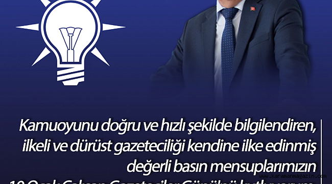 AK Parti Karaman Merkez İlçe Başkanı Feyzullah Tunç 10 Ocak Çalışan Gazeteciler günü dolayısıyla bir kutlama mesajı yayınladı.