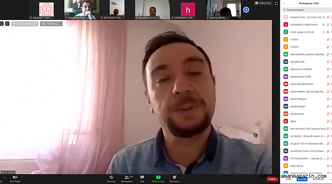 Uzaktan eğitim sürecinde Karaman İl Milli Eğitim Müdürlüğü tarafından gerçekleştirilen eğitim programlarına bir yenisi daha eklenerek webinar eğitimleri kapsamında eğitimcilerle telekonferans düzenlendi.