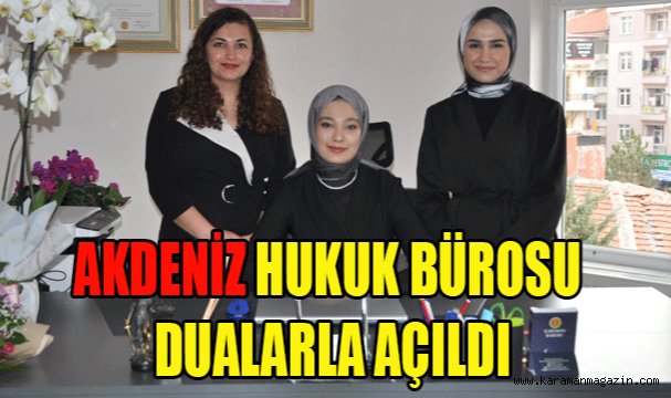 Kirişçi mahallesi şamkapı cad. Yüksel Atik iş merkezi no 77/34 Akdeniz Hukuk ve Danışmanlık Bürosu Merkez/Karaman adresinde faaliyet gösterecek olan Av.Mehlika Çelik , Av. Semanur Atalay, Av. Büşra Kuş’a ait hukuk bürosu açıldı. Açılışa Karaman Baro Başkanı Avukat Oktay Yılmaz, Karaman belediye başkan yardımcısı Eyüp Hüsamettin Aslan Av. Hüseyin Mutlu Karaman Deva Partisi İl Başkanı Mustafa Burak Demirer, Karaman İyi parti gençlik kolları başkanı Burak erbay siyasi parti temsilcileri Karaman Barosu Mensubu avukatlar, iş insanları ve vatandaşlar katıldı.