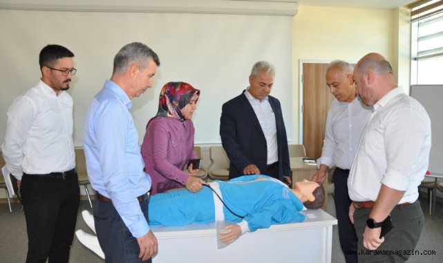 İnceleme sırasında maketler hakkında bilgi veren İl Sağlık Müdürü Dr. Adnan Kurşun; ‘’ Alımını gerçekleştirdiğimiz maketlerimiz son teknoloji ile üretilmiş olup eğitimi veren personelin takip edeceği simülasyon programı ile entegreli çalışmaktadır. Eğitim alacak sağlık personeli gerçek vaka ile birebir aynı semptomları gösteren makete müdahalede bulunduğu sırada bu simülasyon programı ile izlenebilmektedir. Sahada karşılaşılan kalp krizi, trafik kazası, boğulma gibi acil hastalara müdahale eden ekiplerimiz bu cihazlarla mesleki gelişim eğitimlerini sürdüreceklerdir’’ dedi.