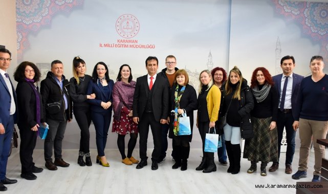 Almanya’nın koordinatörlüğünü yürüttüğü Romanya, Çekya, Yunanistan ve Türkiye’nin ortağı olduğu proje kapsamında Avrupa’dan gelen eğitimciler ve öğrenciler İl Millî Eğitim Müdürü Mehmet Çalışkan’ı ziyaret ederek Karaman’da yürütülen eğitim faaliyetleri ile ülke kültürüne ilişkin merak ettikleri soruları sorarak bilgi edindiler.
