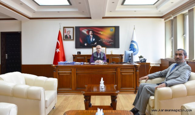 Karamanoğlu Mehmetbey Üniversitesi (KMÜ) Rektör V. Prof. Dr. Hüseyin Karaman, Ayrancı İlçe Müftüsü Dr. Yaşar Doğru’yu makamında kabul etti.