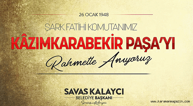 karaman belediye başkanı Savaş Kalaycı, Kazım Karabekir Paşa’nın vefatının 73. yıl dönümü nedeniyle bir anma mesajı yayınladı.