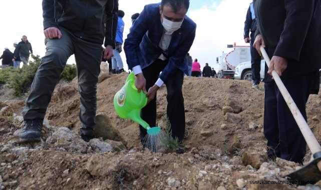 Karaman Belediye Başkanı Savaş Kalaycı, 11 Kasım Milli Ağaçlandırma Günü dolayısıyla düzenlenen fidan dikme törenine katıldı.
