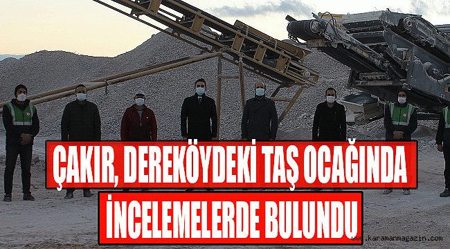 Karaman İl Özel İdaresi Genel Sekreteri Evren ÇAKIR, İl Özel İdaresi Yol ve Ulaşım Müdürlüğü yetkilileri ile birlikte Dereköyde faaliyet gösteren Taş Ocağında ve Konkasör Tesisinde incelemelerde bulundu ve ekiplerden çalışmaların son durumu hakkında bilgiler aldı.