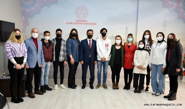 Fatih Anadolu Lisesi öğrencileri Okul Müdürü Durmuş Sayaslan ve Proje Koordinatörü Burcu Keskin, Müzik Öğretmeni Feyzanur Okur ile birlikte İl Millî Eğitim Müdürü Mehmet Çalışkan’ı ziyaret ederek Değerlerim Değerlidir (My Values are Valuable) adlı eTwinning projesi hakkında yaptıkları faaliyetleri anlattılar.