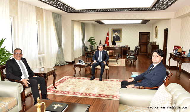 Vali Mehmet Alpaslan Işık, DSİ Konya 4. Bölge Müdürü Mehmet Ekinci ve Karaman 42. Şube Müdürü Halil İbrahim Özoğlu’nu makamında kabul etti.