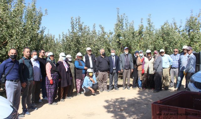 08.10.2021 tarihinde ilimizde Tarım ve Orman Bakanı Dr. Bekir PAKDEMİRLİ’nin katılımı ile gerçekleştirilen Sektör Toplantısında ELMA’da hasat kayıplarının en aza indirilmesi için çalışma yapılması gündeme gelmişti. Bugün İl Tarım ve Orman Müdürümüz Yusuf ŞAHİNBAŞ, Bitkisel Üretim ve Bitki Sağlığı Şube Müdürümüz Ömer KOKA, KOP Daire Başkanlığında görevli Mühendis Süleyman ARMAĞAN, Yakup YALÇIN, Eğirdir Meyvecilik Araştırma Enstitüsü (MAREM) Hasat Sonrası Fizyolojisi Bölüm Başkanı Atakan GÜNEYLİ, Karaman Ziraat Odası Başkanı Mehmet BAYRAM, elma Üreticileri Birliği Başkanı Ahmet YILDIZ ile beraber ilimizdeki bahçelerde Elma hasatı yapan Tarım İşçilerine Elma Hasat Teknikleri konusunda bilgilendirme eğitimleri yapıldı.