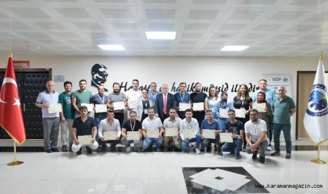 Karamanoğlu Mehmetbey Üniversitesi (KMÜ) Enerji Verimliliği Uygulama ve Araştırma Merkezinde (KAREN) ‘Enerji Yöneticisi’ eğitimlerini tamamlayan ilk kursiyerler sertifikalarını aldı.