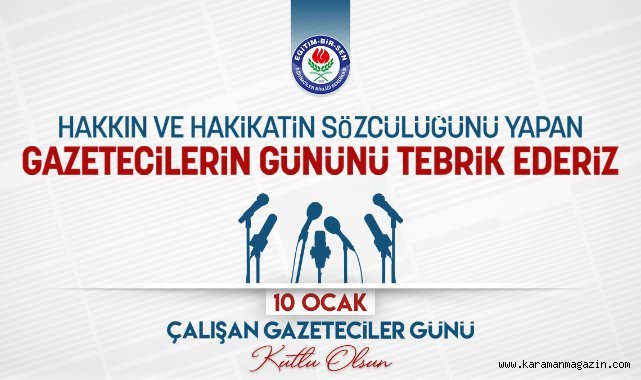 Karaman Eğitim Bir-Sen Şube Başkanı Recep KAYA, 10 Ocak “Çalışan Gazeteciler Günü” kapsamında sitemize yaptığı basın açıklamasında ;