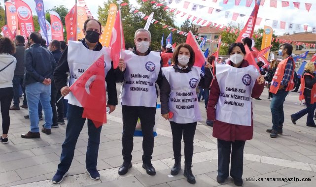 KAMU EMEKÇİLERİ HUKUKSUZLUĞA KARŞI MEYDANLARA ÇIKTIBağımsız Kamu Sendikaları ve Platformları, “ Açlık ve yoksulluğa mahkum eden satış sözleşmesine ve yüzde 1 kota dayatmasına karşı birlikte mücadele için” sloganıyla Ankara Anıtpark’ta bir araya geldi. Platformun önemli bileşenlerinden olan Sağlık Hizmetleri Sendikası (SAHİM-SEN)’nın Genel Başkanı Özlem Akarken, “Bağımsız Kamu Sendikaları ve Platformları ve SAHİM-SEN olarak Anıtpark’ta bir araya geldik. Eylemde sağlık emekçilerine karşı uygulanan haksızlıklara ve sistemin işlememesine neden olan adaletsiz kararlara dönük hep birlikte sesimizi yükselttik” dedi. Bağımsız Kamu Sendikaları ve Platformları, Ankara Anıtpark’ta bir araya geldi. “Açlık ve yoksulluğa mahkum eden satış sözleşmesine ve yüzde 1 kota dayatmasına karşı birlikte mücadele için Anıtpark’tayız” sloganıyla toplanan sendikalar, “ Ek gösterge, Alınan unvanların geri verilmesi, 2020 de başvurusu yapılıp 24 Eylül 2021’de mülakat sınavı da biten unvan değişikliği sınavının mülakat sınav sonuçlarının 15 Ekim 2021 de açıklanması, bir kereye mahsus yardımcı hizmetler sınıfının eğitim öğretime göre sınıflarının değişmesi, 5 dakikalık muayene süreleri, liyakatsiz atamalara, Aile Hekimleri Sözleşmesi ve yüzde 1” haksızlıklarına karşı ses yükseltti. Platform içerisindeki sendikalardan biri olan Sağlık Hizmetleri Sendikası (SAHİM-SEN)’nın Genel Başkanı Özlem Akarken, “Uzun süredir haksızlıklarla boğuşan sağlık emekçilerimiz için böyle bir eylem son derece önemliydi. Sağlık emekçileri olarak bu haksızlıklara “Dur” demek için Anıtpark’ta buluşup hukuksuzluğa karşı sesimizi yükselttik” ifadelerini kullandı. “HUKUKSUZLUĞUN BİR AN OLSUN PEŞİNİ BIRAKMADIK”Anıtpark’ta bir araya gelen sendikalar, Türkiye’de sağlık emekçilerinin temel sorunlarından biri olmayı sürdüren toplu sözleşme ikramiyesi alabilmek için yüzde 1 barajını geçen sendikalara üye olma şartına tepki gösterdi. Ayrıca alanda, daha önce sağlık çalışanlarına verilen artırımlı nöbet ücretinin, Danıştay kararıyla bozulmasıyla sağlıkçılardan geri istenmesi durumuna karşı da ses yükselten kalabalık, hak kayıplarına karşı bir ağız oldu. Özlem Akarken, “ Sağlık çalışanlarının daima yanında olduk ve olacağız. Böylesine bir hukuksuzluk karşısında durup sesimizi yükselterek sağlık emekçilerine karşı işlenen hukuksuzluğun peşini bırakmayacağımızı bir kez daha gösterdik” dedi. Akarken, “ Ayrıca yürürlüğe giren Aile Hekimliği Ödeme ve Sözleşme Yönetmeliği ile aile hekimliği çalışanlarını işçi statüsüne indirgeyip, özlük haklarını ellerinden alan haksız uygulamaya karşı da alanda boy gösterdik. ” sözlerini sarf etti. “BÜTÜN HAKSIZLIKLARA KARŞI TEK SES OLDUK”Özlem Akarken, seçim vaatleri arasında olmasına rağmen yıllardır yürürlüğü girmeyen 3600 ek gösterge ile ilgili de alanda tavır takındıklarını belirtip, sağlık çalışanlarını da kapsayan ek göstergenin kamu emekçileri için büyük önem taşıdığını söyledi. Akarken, “İktidarın seçim vaadi olmasına rağmen henüz konuyla ilgili adım atılmamış olan 3600 ek gösterge ile ilgili de emekçilerin haklı taleplerini dile getirdik Her meslek grubunun ek gösterge düzenlemesine ihtiyacı var” dedi. Hak kayıplarına karşı her zaman seslerini çıkaracaklarını ve sendikaların sindirilemeyeceğini anlatan Akarken, “26 Ağustos 2016 tarihinde çıkartılan kararnameyle Türk Silahlı Kuvvetleri’ne ait 33 askeri hastane Sağlık Bakanlığı’na devredildi. Bu hastanelerde çalışan subay, astsubay ve sivil memurların özlük hakları ve konumları ise hala çözüme kavuşturulmadı. Son olarak binlerce sağlık astsubayının ve sivil memurun hak ederek kazandığı sertifikalardaki unvanları da ellerinden alındı. TSK’dan devrolan sağlıkçıların özlük hakları yok sayılıyor. Bu vatan savunmasında mesai mefhumu gözetmeden yıllarda çalışmış kişilere yapılan büyük bir hukuksuzluk örneğidir” ifadelerini kullandı.