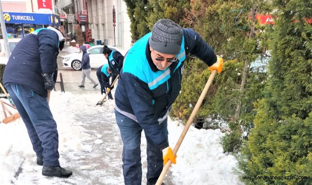 Karaman Belediyesi yoğun kar yağışı, don ve buzlanmalara karşı çalışmalarını kesintisiz sürdürüyor.