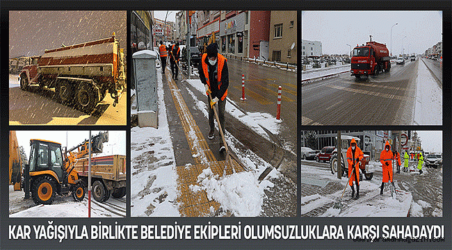 KAR YAĞIŞIYLA BİRLİKTE BELEDİYE EKİPLERİ OLUMSUZLUKLARA KARŞI SAHADAYDI