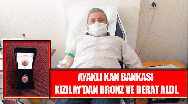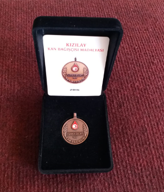 Karaman'da Kızılay'a 10 kez kan bağışında bulunan düzenli bağışçı Abdullah Konuksever’e bronz madalya ve beratı verildi.