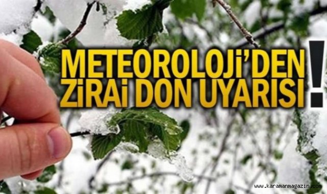 Bugünden (Çarşamba) itibaren yağışlı ve bulutlu hava şartlarının bölgemizi terk etmesiyle birlikte, minimum sıcaklıkların düşmesi sonucunda bölgemizde (Konya, Karaman, Aksaray, Niğde) gece ve sabah saatlerinde don olaylarının görüleceği tahmin ediliyor. Zirai faaliyetlerin devam ettiği bölgelerde çiftçilerimizin ve ilgililerin dikkatli ve tedbirli olması gerekmektedir.