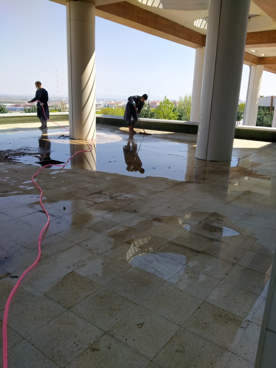 Hastanede virüsü ile ilgili tedbirler de arttırılarak devam ediyor. Bu bağlamda dezenfekte ve ilaçlama çalışmaları aralıksız sürüyor. Poliklinikler başta olmak üzere toplu kullanım alanlarında, servislerde, belirli aralıklarla dezenfekte ve ilaçlama işlemleri artan bir ivmeyle devam ediyor. Kurum lararası iş birliği ile yapılan ilaçlama ve dezenfeksiyon çalışmaları kapsamında personel araçlarının bile ilaçlanması dikkat çekiyor. Sağlık Bakanlığı onaylı, çevre ve insan sağlığına zarar vermeyen kokusuz ürünlerle yapılan ilaçlama çalışmaları periyodik olarak tekrarlanıyor.