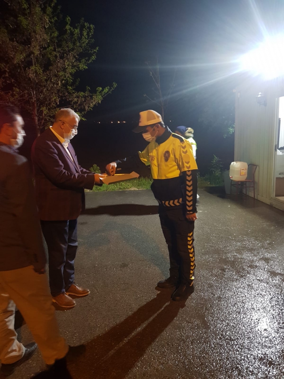 AK Parti Karaman İl Başkanı Abidin Çağlayan gece geç saatlerde Karaman girişlerinde kurulan nöbet noktalarında görev yapan emniyet güçlerini ziyaret ederek, çalışmaları için teşekkür edip tatlı ikramında bulundu.