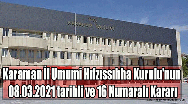 Karaman İl Hıfzıssıhha Kurulu Vali Mehmet Alpaslan IŞIK Başkanlığında, kurul üyelerinin katılımı ile toplanmış olup, aşağıda belirtilen kararın alınması uygun görülmüştür.