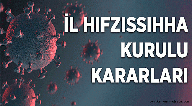 Karaman İl Hıfzıssıhha Kurulu Vali Mehmet Alpaslan IŞIK Başkanlığında, kurul üyelerinin katılımı toplanmış olup, aşağıda belirtilen kararın alınması uygun görülmüştür.