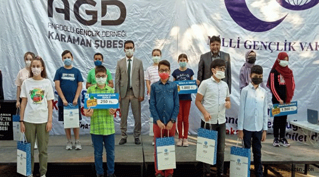 Anadolu Gençlik Derneği Karaman Şubesinde açık alanda gerçekleştirilen ödül törenine dereceye giren öğrenciler, veliler, Sivil Toplum Kuruluşlarının temsilcileri ve İl Milli Eğitim Müdürü Mehmet Çalışkan katıldı.