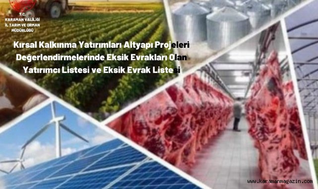 KIRSAL KALKINMA YATIRIMLARI ALTYAPI PROJELERİ DEĞERLENDİRMELERİNDE EKSİK EVRAKLARI OLAN YATIRIMCILAR