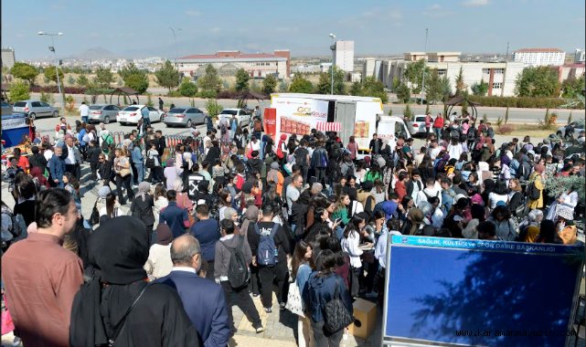 Programdan önce KMÜ Rektörü Prof. Dr. Namık Ak, 15 Temmuz Konferans Salonunun önünde Öğrenci Toplulukları tarafından kurulan stantları ziyaret ederek, onlarla sohbet etti.