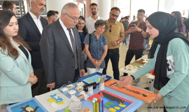 KMÜ Rektörü Prof. Dr. Namık Ak, sergideki tüm stantları gezerek öğrencilerle bir süre sohbet etti. Sergilenen eserler hakkında bilgiler alan Rektör Prof. Dr. Namık Ak, öğrencileri çalışmalarından dolayı tebrik ederek, başarılar diledi.