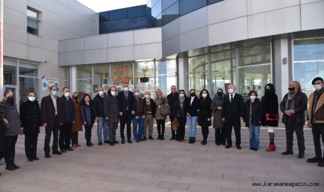 Rektör Namık Ak, KMÜ akademik personeli tarafından yağlı boya resim, seramik, tezhip, keçe, dokuma, grafik tasarım, kat-ı ve ağaç işleme gibi tekniklerle hazırlanan pekçok eseri yerinde inceleyerek eserler hakkında bilgi aldı.