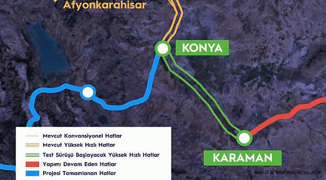 Karaismailoğlu “Konya-Karaman hızlı demiryolu hattımızın uzunluğu 102 kilometredir. Altyapısı ve üstyapısı bitmiş durumda. Konya-Karaman YHT hattında sinyalizasyon sistemi montajları tamamlandı. 8 Şubat’ta test sürüşlerine başlanılacak. Test sürüşleri 3 hafta sürecek. İnşallah hedefimiz Mayıs sonu itibarıyla işletmeye başlamaktır. Yine Karaman-Ulukışla hattımızda çalışmalarımız hızla devam ediyor”