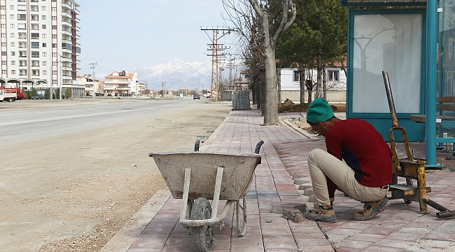 Karaman Belediyesi’ne bağlı ekipler Larende Mahallesindeki kaldırım çalışmalarına devam ediyor.