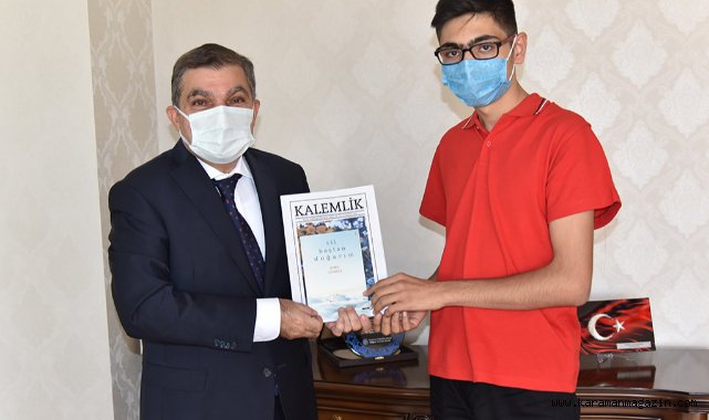 Ziyarette arkadaşlarıyla birlikte çıkardığı aylık edebiyat dergisi “Kalemlik” ve çeşitli şiirlerinden oluşan “Sil Baştan Doğarım” adlı kitabı hakkında Vali Mehmet Alpaslan Işık’a bilgiler veren Enes, edebiyata ve özellikle şiire karşı büyük bir ilgisi olduğunu belirterek aynı azim ve inançla yazın dünyasında ve özellikle şiir alanında daha kaliteli eserler verebilmek için çok çalışacağını söyledi.