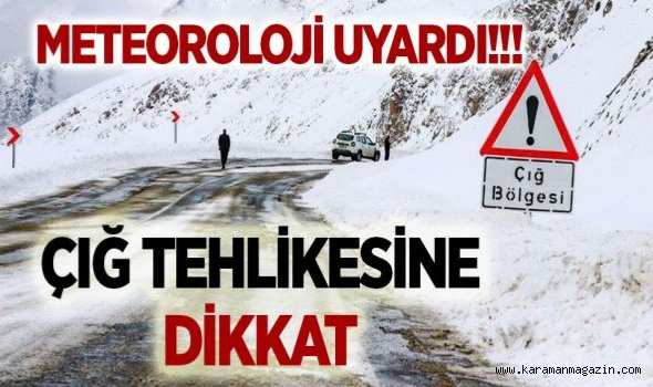 Bölgemizde gerçekleşen kar yağışları özellikle dağlık kesimlerde yüksek kar örtüsü oluşmasına sebep olmuştur. Önümüzdeki günlerde hava sıcaklıklarının bölge genelinde 3 ila 5 derece artması beklenmektedir. Yapılan son değerlendirmelere göre; Konya, Karaman ve Niğde'nin Toros Dağları kesimlerinde yüksek kar örtüsü bulunan eğimli yerlerde, önümüzdeki bir haftalık periyotta çığ tehlikesi bulunmaktadır. Yetkililerin, vatandaşlarımızın dikkatli ve tedbirli olması, Meteoroloji Genel Müdürlüğü'nün yayınlayacağı rapor ve meteorolojik uyarıları takip etmeleri önem arz etmektedir.