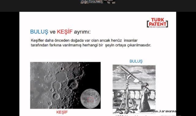 Karaman İl Millî Eğitim Müdürlüğünün okul ve kurumlarında sınai mülkiyet bilincinin arttırılması, öğrencilerin girişimci bireyler olarak temelden sürece hâkim yetişmesi amacıyla Türk Patent Kurumu ile iletişim sağlanması sonucunda, yönetici ve öğretmenlere Sınai Mülkiyet Hakları konusunda çevrim içi eğitim programı düzenlendi.