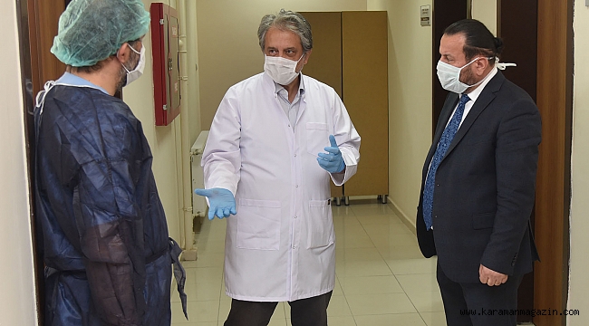 KMÜ Rektör Yardımcıları Prof. Dr. Ercan Oktay ve Prof. Dr. Birol Üner, kmÜ Biyoloji Bölüm Başkanı Doç. Dr. Gökhan Sadi, Karaman Devlet Hastanesi Tıbbi Mikrobiyoloji Uzmanı Dr. Orhun Öztürk ve hastane teknik personelinin de hazır bulunduğu ziyaret, Rektör Akgül'ün ekibe başarı ve kolaylık dilemesinin ardından sona erdi.