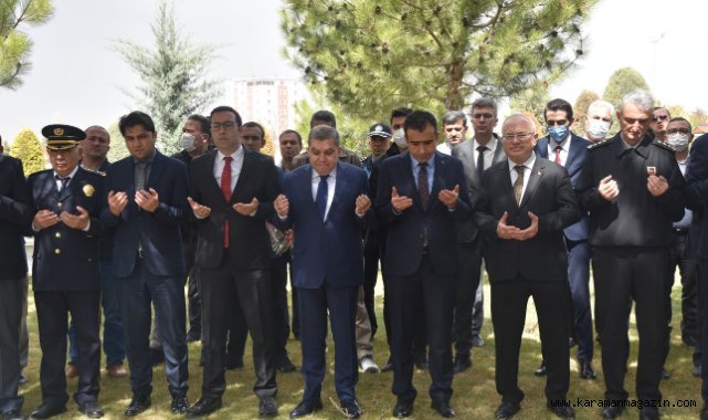 İl protokolü tarafından Karaman Şehir Mezarlığı içerisinde bulunan Polis şehitliği ve Garnizon Şehitliği ziyaret edildi. Burada Kur’an-ı Kerim okundu, şehit mezarları tek tek ziyaret edilerek karanfil bırakıldı. Program, yapılan dua ile sona erdi.