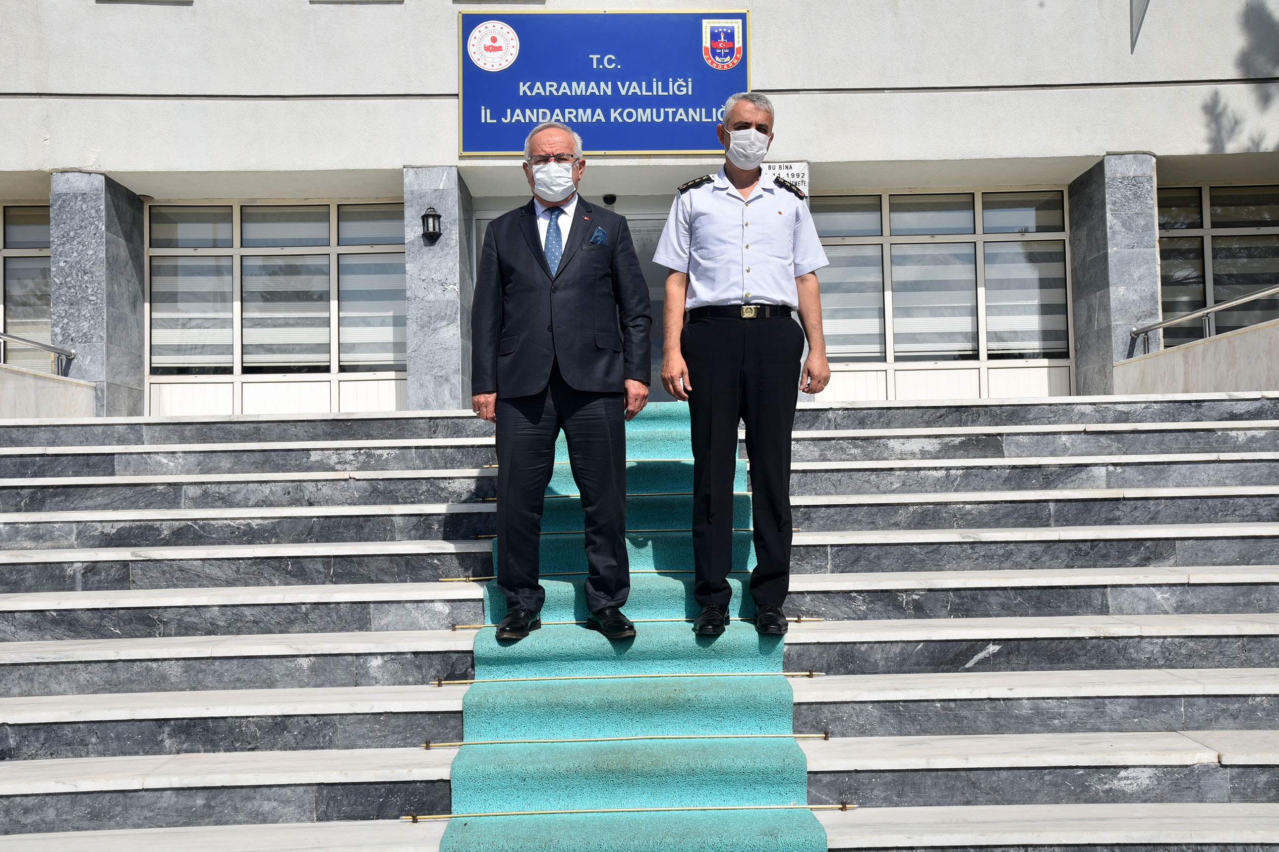 Karamanoğlu Mehmetbey Üniversitesi (KMÜ) Rektörü Prof. Dr. Namık Ak, Karaman İl Jandarma Komutanı Kıdemli Albay Mustafa Çetinkaya'ya hayırlı olsun ziyaretinde bulundu.