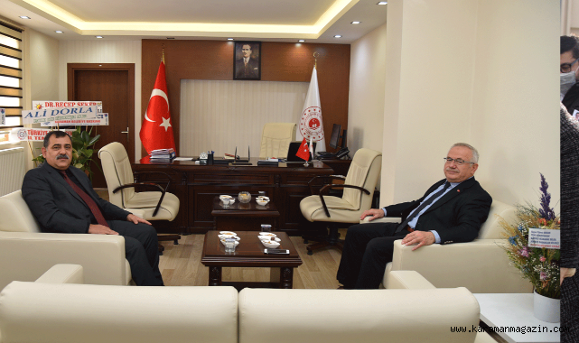Karamanoğlu Mehmetbey Üniversitesi (KMÜ) Rektörü Prof. Dr. Namık Ak, Çevre, Şehircilik ve İklim Değişikliği İl Müdürü Fikret Onhan'ı ziyaret etti.