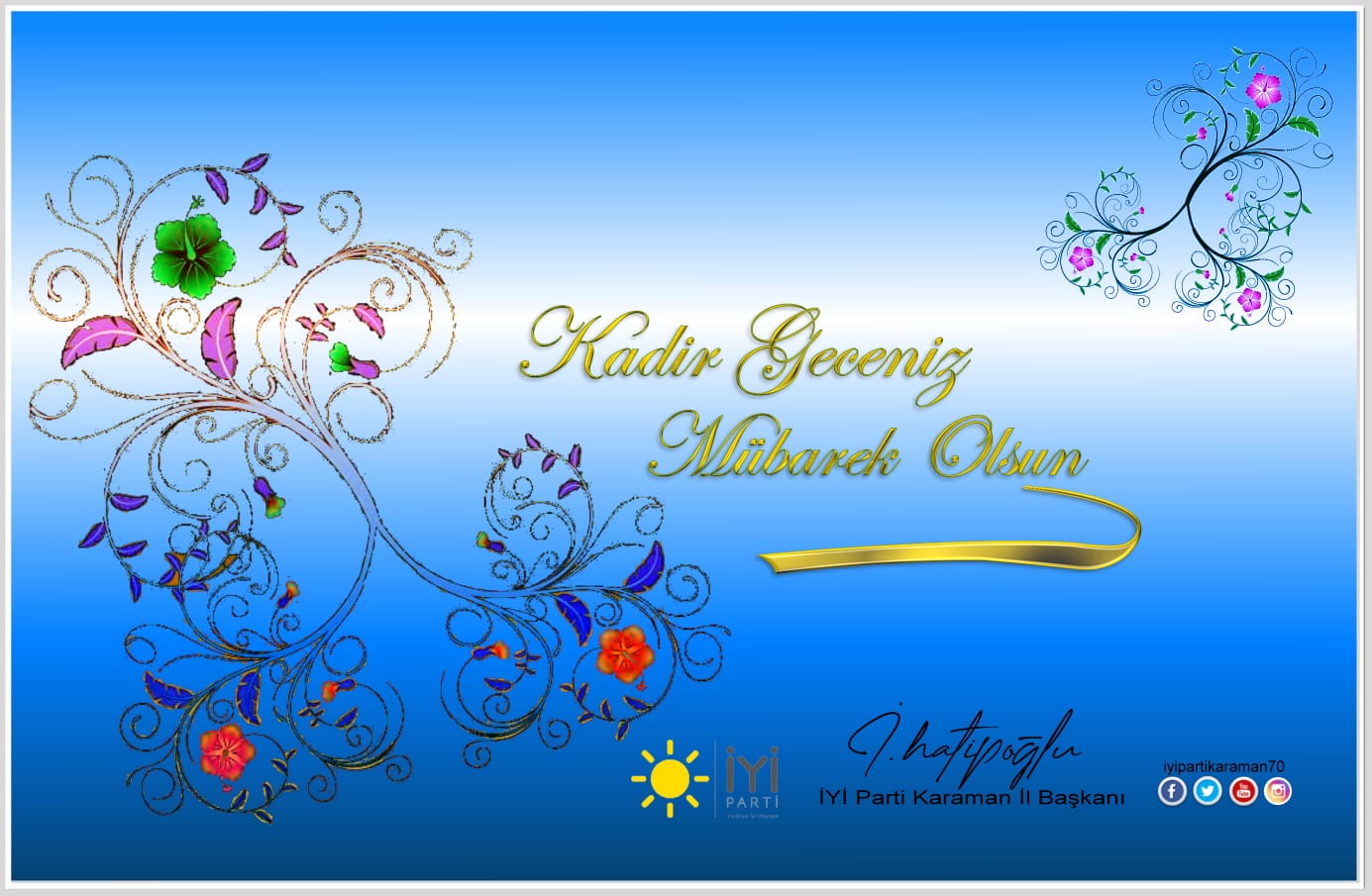 Bu gece yapılacak olan ibadetlerimizin yüce Allah tarafından kabul edilmesi temennisiyle; Karaman'lı hemşehrilerimin ve İslam aleminin mübarek Kadir Gecesini kutlar ve esenlikler dilerim.