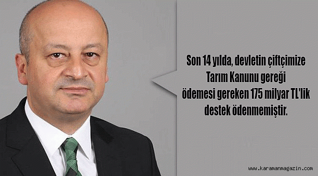 Son 14 yılda, devletin çiftçimize Tarım Kanunu gereği ödemesi gereken 175 milyar TL'lik destek ödenmemiştir. Bu, devletin her bir çiftçi ailesine 80 bin 754 lira borçlu olduğu anlamına gelir. Diğer taraftan, özellikle son birkaç yıldır hasat zamanı açılan ithalat kapılarıyla çiftçilerimizin malının değeri pula dönmüştür.