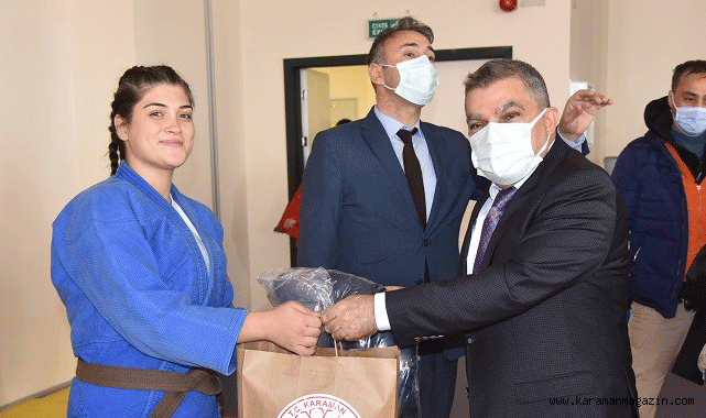 Vali Mehmet Alpaslan Işık, Çok Amaçlı Spor Salonunda çalışmalarını sürdüren İl Özel İdaresi Judo takımını ziyaret ederek spor malzemesi dağıtım programına katıldı.