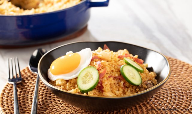 Surinam mutfağından ‘Nasi Goreng’ duru bulgur farkıyla mutfaklarınızda Tüm dünyada bulgurla hazırlanan eşsiz lezzetleri tüketicilerin beğenisine sunan Duru Bulgur, bu kez Surinam mutfağının meşhur “Nasi Goreng” tarifini sofralarla buluşturuyor. Bulguru sofralara en sağlıklı haliyle kazandırmayı hedefleyen Duru Bulgur, dünya mutfağının en seçkin örneklerini Türk mutfağına kazandırmaya devam ediyor. Surinam mutfağının en lezzetli örneklerinden “Nasi Goreng” içeriğinde tavuk etiyle kuzu jambonu, Duru Bulgur’un eşşiz lezzetini bir araya getiriyor. Her ay düzenli olarak dört farklı ülkeden yemek tariflerinin yayınlandığı www. durulezzetler.com web sitesinde de yer bulan Nasi Goreng, zengin içeriği ve eşsiz lezzetiyle sofralara yeni bir renk getirecek. Çok beğenilen Nasi Goreng tarifi ise şu şekilde: Nasi GorengMalzemeler