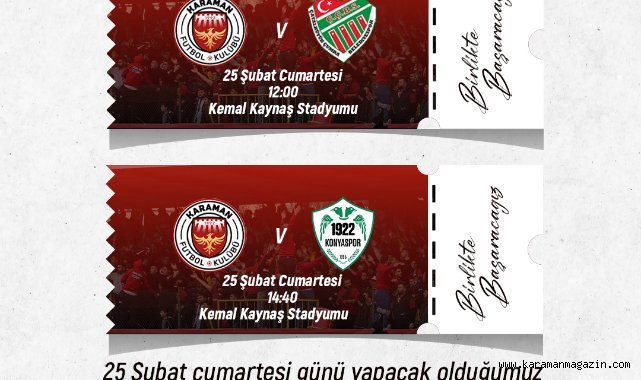 Karaman FK.’nın 25.02.2023 (yarın) oynayacağı 2 hazırlık maçında elde edilecek olan gelir depremzedelere bağışlanacak.