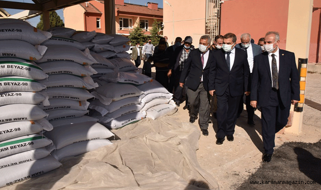 Tarım ve Orman İl Müdürlüğünde düzenlenen tohum dağıtım programına Vali Mehmet Alpaslan Işık, Karaman Milletvekilleri Dr. Recep Şeker, Av. Selman Oğuzhan Eser, Vali Yardımcısı Mehmet Özmen, İl Emniyet Müdürü Ayhan Taş, Tarım ve Orman İl Müdürü Yusuf Şahinbaş, kurum müdürleri, AK Parti İl Başkanı Abidin Çağlayan ve üreticiler katıldı.
