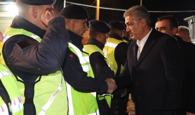 Konya yolu uygulama noktasından sonra İl Jandarma Komutanlığı Ereğli yolu uygulama noktasında inceleme ve denetlemelerde bulunan Vali Akkoyun, jandarma personeli ile bir süre sohbet ederek yeni yıllarını kutladı.