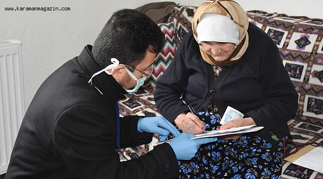 Yeni tip koronavirüs (Kovid-19) tedbirleri çerçevesinde Karaman Valiliği bünyesinde oluşturulan Vefa Sosyal Destek Gruplarına gönüllü olarak dâhil olan idareci, öğretmen ve personeller, özellikle tek başına yaşayan 65 yaş ve üstü vatandaşlara evlerinde ulaşarak bankalar üzerinden yürütmeleri gereken işlerde yardımcı oluyorlar.