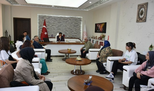 Yarenler Yarışıyor Projesinin dereceye giren takımları okul yöneticileri ve öğretmenleriyle birlikte İl Millî Eğitim Müdürü Mehmet Çalışkan’ı ziyaret ederek yapmış oldukları çalışmaları anlattılar.