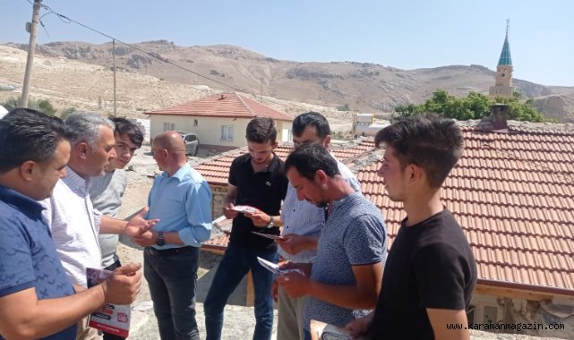 Yeniden Refah Partisi Karaman İl Teşkilat Başkanı KÖYLÜ yaptığı açıklama; “Köylümüzün dertlerini dinledik ve Partimize üye çalışması yaptık. Yeniden Refah Partimizin projeleri başta olmak üzere, Adil Düzen misyonumuzu anlattık. Birçok vatandaşımızdan olumlu tepkiler aldık ve çoğu insanımızda biran evvel gelin bizi kurtarın dedi. Vatandaşımızdan gördüğümüz, en kısa zamanda yapılacak olan seçimlerde oyumuz Erbakan Hocanın oğluna diye sözler de aldık. BUNDAN SONRA OYUMUZ ERBAKAN HOCANIN OĞLUNA.